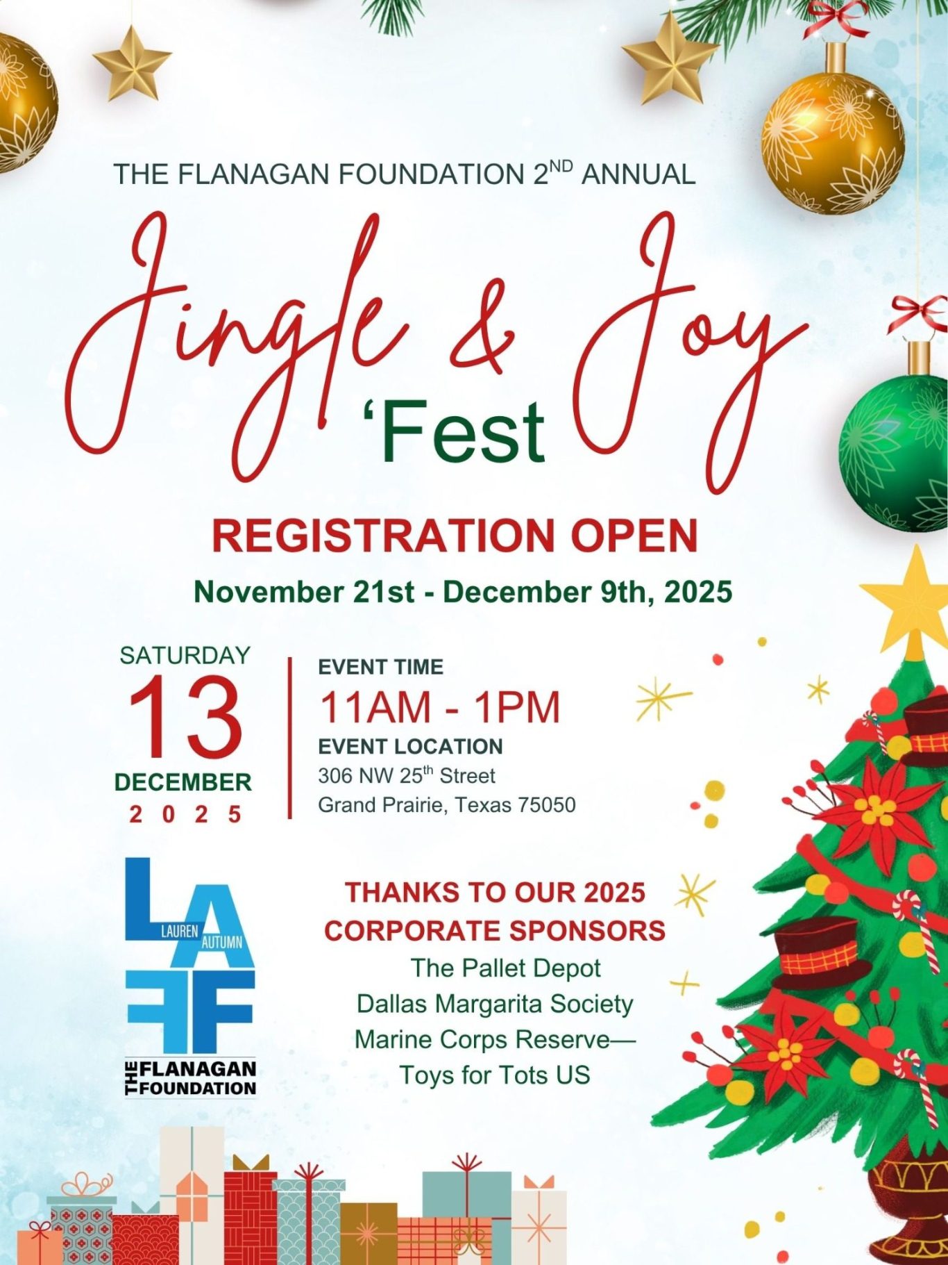 - Saturday, December 13, 2025 from 11am - 1pm is the only day of the Jingle & Joy 'Fest Christmas Celebration.